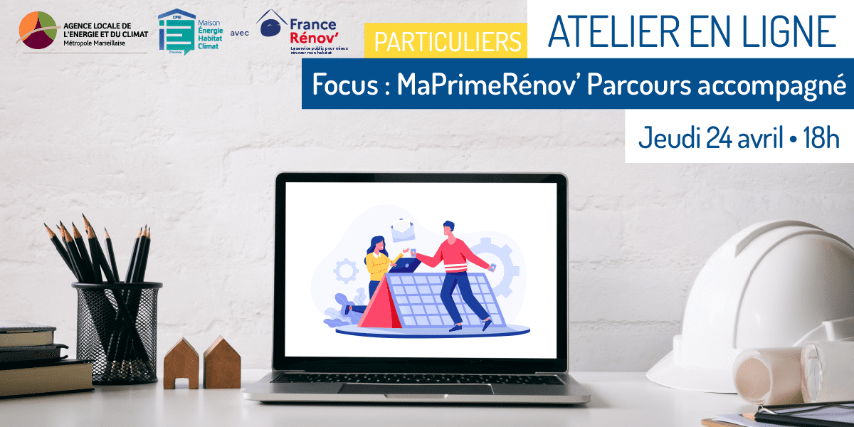 Les espaces conseil France Rénov' de la Métropole Aix-Marseille-Provence vous proposent un nouvel atelier en ligne :🏠🔨FOCUS : MAPRIMERENOV’ PARCOURS ACCOMPAGNEJeudi 24 avril 2025 à 18h00 MaPrimeRénov’ Parcours accompagné est une aide de l’État qui vous permet d’envisager des travaux de rénovation d’ampleur de votre logement.  Ce webinaire permet de faire un focus sur cette aide […]