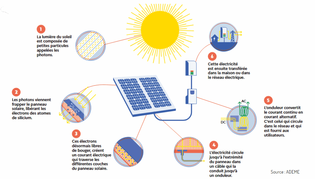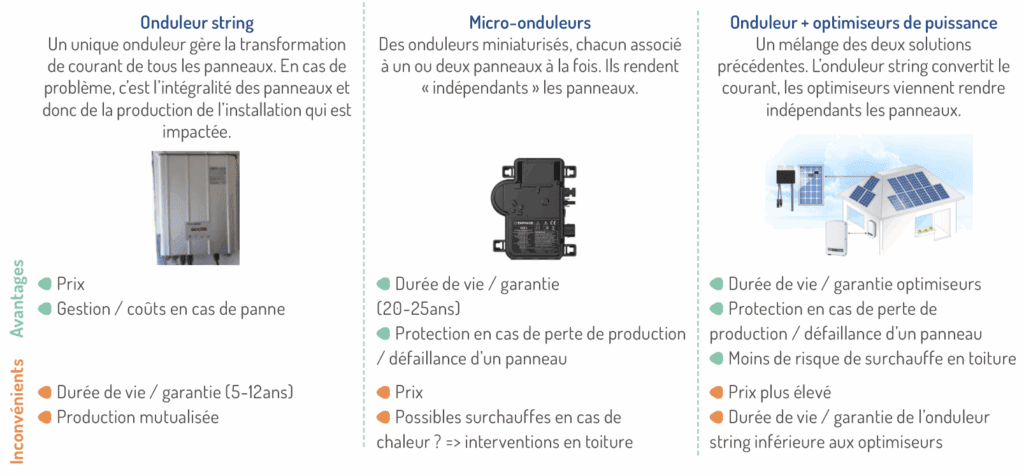 L’onduleur : il convertit le courant continu produit en courant alternatif utilisable pour vos appareils.